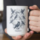 Begrüßen Sie den Tag mit einer mystischen Morgenroutine mit diesem personalisierten Keramikbecher. Das Design zeigt eine Versammlung von hochdetaillierten Raben und Totenschädeln, die auf skelettartigen Ästen sitzen, alle zentriert um einen strahlenden Vollmond. Es ist die perfekte Möglichkeit, ein gothisches Ereignis zu feiern oder ein aufmerksames Geschenk für einen Naturliebhaber.