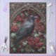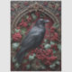 A striking gothic-style raven perched among vibrant red berries and lush holly leaves, framed by ornate golden flourishes. This richly detailed composition blends mystery, nature, and seasonal elegance in a dramatic visual statement.