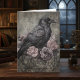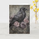 This elegant note card features a striking black raven perched amongst dusty pink and purple roses, set against a dark, textured background. Perfect for sending a heartfelt message, a thank you note, or simply to stay in touch with a loved one. Its sophisticated gothic aesthetic appeals to those who appreciate dark romanticism and unique artistry in their stationery.