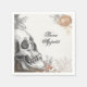 Diese Vintage gotische Serviette zeichnet sich durch einen fein gezeichneten Schädel aus, der mit sanften Blumen und gedämpftem Blattwerk gerahmt ist. Das elegante Drehbuch "Bone Appétit" bringt eine clevere Halloween-Drehung, die dunkle Eleganz mit skurrilen Details verbindet. Mit seinen neutralen Grautönen und den dezenten Blütenakzenten ist dieses Design ideal für erwachsene Halloween-Partys.