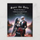 Gothic Skeleton Couple Navy Save the Date Ankündigungspostkarte