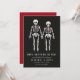 Ein witziges und witziges Save the Date Design mit Skeletten und großen roten Herzen. Bereiten Sie sich mit einem Halloween- oder Day of the Dead-Thema auf Ihre Hochzeiten im Oktober vor. Ideal für Fans von unangenehmen Ferien oder Horror.