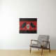 Dieser phantastische Wandteppich zeigt ein grafisches Bild eines Schädels mit roten Augen und gelben Zähnen, die mit Rissen bedeckt sind. Der gruselige Schädel hat einen großen Rabe, der auf beiden Seiten wie ein Wächter stehend ist. Die Raben sind schwarz mit grauen Beinen und Klauen. Sie haben auch schwarze, beattelte Augen.