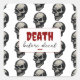 Gothic Skull "Death Before Decaf" | Spooky Funny - Quadratischer Aufkleber