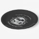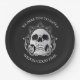 Ein Schädel und eine verzierte Grenze auf einem schwarzen Hintergrund, und "Wir wagen es, Ihnen eine Wicked Good Time zu haben" oder jede Formulierung, die Sie wählen, in schicken weißen Schriften auf diesen Halloween-Party Papier-Teller. PASSENDE Artikel in unserem Geschäft.