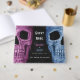 Gotischer Schädel Kopf Vintag rosa, blau, schwarz Hallowedding Hochzeitsempfangsbuch. Spaß, lustiges Halloween-Fest zum Feiern. Bis zum Tod tun wir Teil Goth Skript auf Textur drucken. Bildrecht Marg Seregelyi Fotografie.