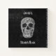 Schwarz-Weiß Schädel Gothic Grunge Texture Art Sketch Buch. Machen Sie Ihre Doodles in diesem coolen Buch. Modernes, modernes, beängstigendes, Vintages Halloween-Design. Bildrecht Marg Seregelyi Fotografie.