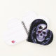 Dieses herzförmige Notizbuch verfügt über einen geknackten Schädel mit einem Ahornblatt-Detail, umgeben von gotischen Federn. Ein einzigartiger Schreibbegleiter.