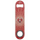 Dieser Flaschenöffner ist rot mit einem spitzigen Spirallinienmuster und einem gotisch roten Herz, das in weißen Knochen mit einem Schädel in der Mitte vorne und hinten dargestellt ist. Passen Sie Ihren Namen oder Text mit der Vorlage an.
