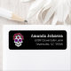 Diese Rücksendeadressen-Aufkleber verfügen über einen Blumenschädel mit Rose am Kopf und an den Augen, der auf einem schwarzen Hintergrund für Ihren eigenen Namen und Ihre eigene Adresse angepasst werden kann.