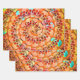 Gothischer Schädel spiralförmig farbenfroh orange gelben Handwerk decoupage Packpapier Blatt Set von 3. Retro-Stilmuster Moderne Pop Kunstkultur Geschenkpackung. Trendy, cool, beängstigend, spukhaft, gruselig, animiert, psychedelisch, abstraktes Halloween-Design. Bildrecht Marg Seregelyi Fotografie.