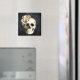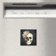 Fügen Sie Ihrem Halloween-Küchendekor einen gotischen Stil hinzu. Das Design zeichnet sich durch einen weißen Blumenschädel auf einem schwarzen, texturierten Hintergrund aus. Der Schädel ist mit einer schönen weißen Rose betont.