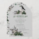 Diese elegante gotische St. Patrick's Day-Einladung enthält handgezeichnet irische und gotische Themenabbildungen mit schwarzer Tinte und zeigt 2 Schädel und eine schwarze Krähe mit grünen Rose, Blätter, Beeren, Wildblumen und grünen Nelken. Die Rückseite weist ein schönes Muster mit diesen Elementen auf. Weich grauer Hintergrund.