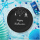 Einfache Schwarz-Weiß-Teller aus Halloween-Feiertag, mit weißem, gotischem Spinnendesign und individualisierbaren Typografie-Schriftzeichen. Ideal, um dieses Halloween mit Freunden zu feiern.