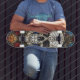 Skateboard Gothic Stached Glass Skull Design. © Dunkles Herz Wünsche. Ein Skateboard mit gotischem Schädeldesign im Buntglasstil.