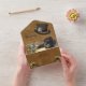 Gold & Brass Steampunk Skulpturen auf Wildleder mit Ledertexturrahmen & Steampunk Skulpturen und Hüte Design für das Ehepaar.