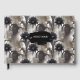 Ein klassisches Aquarellmuster aus schwarzen Amaryllis-Blume bildet den Hintergrund für dieses beeindruckende Gästebuch. Moody-Schwarz-Grau-Farbtöne und ein Schriftart im Stile eines Grundes ergänzen das dunkelätherische Design dieser alternativen Hochzeitssuite.