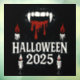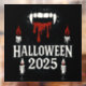 Halloween 2025 feiert dieses gotische rote, schwarze und weiße Design mit Vampirzähnen, Tropfblut und unheimlichen Kerzen. Ideal für Einladungen, Tasse, Shirts und Party.