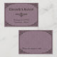 Hier sind gotische Viktorianische inspirierte Hochzeitsstipps in lila Platzkarten mit Ornamenten, Schriftrollen, Scrollarbeiten, einem Banner, einem Blumenrahmen, einem Damast-Muster-Hintergrund und anderen alten Weltstil-Details inspiriert durch die gotische Mittelalterzeit und Viktorianische Ära. Eleganz und Raffinesse auf höchstem Niveau. Sie können die Textfelder des Beispiels nach Ihren Wünschen anpassen.