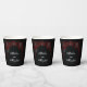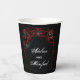 Diese gotischen viktorianischen Schwarz-Weiß- und Rot-Papiertassen eignen sich perfekt für Halloween-Hochzeiten oder Partys, mit einem verzierten, altmodischen Wirblen Rahmen, altersgeätzt, mit spukhaften Spinnweben bedeckt, mit einem leicht strukturierten, mooösen schwarzen Hintergrund. Der Text ist eine Kombination aus Grunge-Skript, klassisch leicht zu lesende Blockschrift, und Old English, mittelalterlichen Stil Typ.
