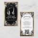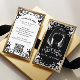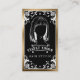 Veredeln Sie Ihre Friseursalons- oder Stylistenmarke mit unserer Gothic-Vintage-Friseursalon-Visitenkarte mit handgezeichnetem, verziertem Rollrahmen und falschen Goldakzenten für ein luxuriöses, tarot-inspiriertes Aussehen. Die Vorderseite zeigt eine Mannequin-Frau mit einer Perücke in der Mitte des Rolldesigns, wodurch Platz für Ihren Firmennamen und Slogan bleibt, während die Rückseite elegante Schnörkel, einen passenden falschen Goldrahmen und Ihre Kontaktdaten mit einem QR-Code für einfache Buchungen zeigt. Die dramatische schwarze, weiße und goldene Farbpalette schafft eine anspruchsvolle gotische Ästhetik, perfekt für Friseursalons, Hairstylisten, Barbierläden und Schönheitsprofis, die eine einzigartige, mystische und vintage-inspirierte Präsentation suchen. Design und Illustration erstellt von ©Mood