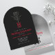 Elegante und romantische Rot-und Schwarz-Gotische Hochzeitseinladungen mit atemberaubenden silbernen Akzenten. Mit einem zarten blumigen Monogramm oben und einem komfortablen QR-Code für eine leichte UAWG auf der Rückseite. Ideal für Paare, die eine romantische, raffinierte Touch für ihren besonderen Tag suchen.