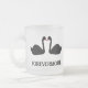Diese phantastische Hochzeitsszene-Tasse zeigt ein digitales Kunstbild eines Paars wunderschöner schwarzer Schwäne, die sich gegenüberstehen und wie sie küssen. Sie sind schwarz mit roten Augen und Schnallen. Es gibt einen eigenen Text, damit Sie die Namen des glücklichen Paares und das Hochzeitstag angeben können.
