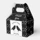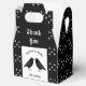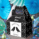 Diese phantastische Gastgeschenk Hochzeit-Box zeigt ein digitales Kunstbild eines Paares von schönen schwarzen Raben, die sich gegenüberstehen und so aussehen, als würden sie sich küssen. Sie sind schwarz mit beatenen Augen und grauen Schnallen und Füßen. Es gibt einen eigenen Text, damit Sie die Namen des glücklichen Paares und das Hochzeitstag angeben können.