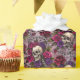 Erleben Sie die dunkle Schönheit dieses gotischen Schädels und die Musterillustrierung der Rose, die ein aufwändiges Design von Schädeln mit lebendigen roten und lila Rose verbindet, Set vor einem strukturierten, launischen Hintergrund.