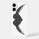 Dieses phantastische iPhone-Gehäuse zeichnet sich durch ein hübsches, gotisches schwarzes Herz und das Aussehen einer feinen Spitze aus. Das Herz ist auf beiden Seiten mit leuchtenden silbernen Metallflügeln flankiert.