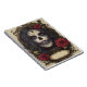 Gothic Female Skull und Rose Notebook. © Dunkles Herz Wünsche. Ein Porträt eines weiblichen gotischen Schädels mit langen Haaren und rote Rosen und einem verzierten Rahmen. Personalisieren Sie diese, indem Sie Ihren Namen in das Etikett unten einfügen.