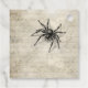 Gotische Halloween-Liebesmarken im Vintagen Stil mit einer schönen Hexe mit ihrem Wolf, einer Spinne und einem Schädel auf alten Büchern, um Ihnen eine spukhafte Atmosphäre zu geben. Alte Papiertextur und altgediegener Text.