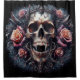 Eine aufwändige Darstellung eines finsteren Schädels, umgeben von lebendigen Rose, mit gotischen Verzierungen geschmückt, die dunkle Symbolik und Schönheit in einer künstlerischen und surrealen Darstellung vermischt.