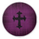 Gotische Art-Tür oder Fach-Griff mit einem lila Samtblick und einem schwarzen gotischen Kreuz.