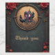 Gotische Beförderung mit Rädern und Rose. Eine gotische Kutsche, die von zwei Raben mit Oberhüten gezogen wird, Set in einem verzierten, goldenen Rundrahmen. Die Kutsche ist mit Blume geschmückt und hat ein Kreuz darüber. Der Hintergrund ist dunkel, die Struktur grün strukturiert und der Rahmen ist von rote Rosen und dekorativen goldenen Schnörkeln umgeben. Die Stimmung ist dunkel, elegant und etwas skurril.