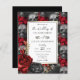 Gotisches Rot, Gold, Schwarz-Flora Hochzeitseinladungen. Imitate golden florale Blätter. Skript-Schriftart-Highlights mit leicht lesbaren Serifennamen Schriftart. Leicht an Ihre Hochzeitsbedürfnisse anzupassen. Gemusterter Hintergrund
