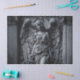 Dekoriertes Papiertaschentuch mit einer Steinengel-Skulptur, die in Weinreben verstrickt ist. Ideal, um Ihren handwerklichen Projekten eine Touch zeitloser Eleganz und Naturschönheit zu verleihen.