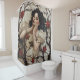 Gotische Frau mit Garnen und Rose Duschvorhang. © Dunkles Herz Wünsche. Dieser gotische Duschvorhang hat eine schöne gotische Frau, die auf einem Satin-Bett liegt, umgeben von Dornen und rote Rosen.
