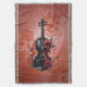 Gotische schwarze Violine mit rote Rosen - elegantes dunkles Kunstdesign. Ein künstlerisches Design im gotischen Stil: eine schwarze Geige, die mit rote Rosen und dornigen Ästen verstrickt ist, vor einem zarten Hintergrund von Pfirsichblüten. Dunkle Tropfformen unterstreichen die mystische Eleganz. Ideal für Liebhaber der dunklen Kunst, der Gotischen Ästhetik, der Musik und romantischer, dunkler Motive.
