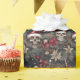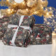 Elegantes und festliches Weihnachtsmuster im gotischen Stil mit fröhlichen Schädeln in Weihnachtsmannmützen, Bonbons und anderen festlichen Feriendekorationselementen sorgt für einen unterhaltsamen und alternativen Look Ihrer Weihnachtsgeschenke.
