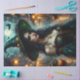 Treten Sie ein in eine Laternenbeleuchtete Halloween-Nacht mit diesem bezaubernden gotischen Hexenwerk. Ihr fließendes ravares Haar kaskadiert unter einem großen, grün getönten Hexenhut, der mit Herbstblättern und leuchtenden Akzenten geschmückt ist, während ihr korsetiertes Kleid mit tiefen Smaragdtönen glänzt. Pumpkins reihen die Kopfsteinpflasterstraßen, Fledermäuse steigen über den Mond und die Szene leuchtet mit unheimlicher saisonaler Magie. Ideal für Halloween Dekor, Gotische Fantasieliebhaber, mystische Zuhause-Akzente und decouseitige Projekte. Dieses wunderschöne Werk vereint gotische Eleganz und festlichen Charme und eignet sich hervorragend für Hexenkunst, saisonale Dekoration oder als Geschenk für alle, die die dunkle Romantik Halloween Lieben.