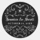 Schwarz-Weiß-Halloween-Gothic-Scroll Hochzeitsnamen & Date Round Sticker Art & Design von Julie Alvarez