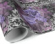 Dunkle Lila Rose mit einem silberfarbenen Filigree-Muster und schwarzem Hintergrund.