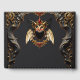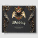 Gotische Romantik, Im Schatten der Liebe. Auf einem tiefen schwarzen Hintergrund, der sofort eine mystische und romantische Atmosphäre schafft, ist ein schwarzes Herz mit majestätischen goldenen Flügeln geschmückt. Die Flügel symbolisieren die Freiheit und die Verbindung zwischen den Liebenden. Rote Edelsteine funkeln im Herzen. Das Herz hängt an einer goldenen Kette, die den luxuriösen Charakter unterstreicht