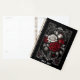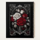 Rot-weiß-graue Rose in einer Vase, die in einem grauen, schmiedeeisernen Rahmen auf schwarzem Hintergrund gehalten sind, schaffen einen schönen Gothebler.