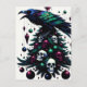 Ein Weihnachtsbaum mit Schädeln und einem raven, der darauf sitzt