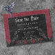 Versetzen Sie Ihre Gäste in eine Welt dunkler, verzaubernder Eleganz mit unserer vintage-gotischen Hochzeitserinnerungskarte "Save the Date". Der tiefe, gealterte burgunderrote Wein-Hintergrund bildet den Rahmen für einen auffallenden Kontrast, wenn kühne weiße Schrift aus aufwendigen schwarzen Textfeldern hervortritt. Dreidimensionale gotische Elemente schmücken das Design und fangen die Essenz von Mysterium und Romantik ein. Entfesseln Sie die Magie und setzen Sie den Ton für einen unvergesslichen Hochzeitstag. Erstellt von Simply Farmhouse Press.