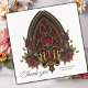 Gotischer Bogengang mit Skulls. Set vor einem geheimnisvollen, tiefroten Hintergrund, erhebt sich ein großer gotischer Bogen majestätisch, mit verzierten Details dekoriert. Die beiden großen Säulen, die mit feinen Schnitzereien geschmückt sind, verleihen dem Bild eine bedeutende Eleganz. In der Mitte des Bogens glänzt ein beeindruckendes Buntglasfenster, dessen zentrales Motiv eine Spinne ein Symbol für Geduld und Kreativität ist. Der von zwei goldenen Schädeln umgebene Bogengang, der sowohl an die Vergänglichkeit als auch an die ewige Liebe erinnert, fasziniert den Betrachter und verspricht ein Fest voller Geheimnisse und Faszination.
