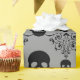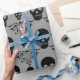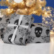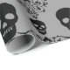 Modische schwarze Schädel auf Grau in einem goth reden Damastmuster an. Grafiken durch Lilly Bimble.