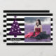 Diese gotische Weihnachtsbaumkarte mit Streifen ist ein Ort für Ihr liebstes Foto, ein lila Weihnachtsbaum mit Skullen auf schwarz-weißem Streifen Hintergrund. Passen Sie Ihren Namen und das Jahr vorne an mit zusätzlichem Raum auf der Rückseite für Ihre Urlaubsnachricht.